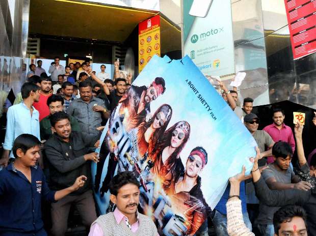 protests-before-cinemas-screening-dilwale-bajirao-14504509114909 Published December 18, 2015 at 620 × 464 in Dilwale News from the Front 3