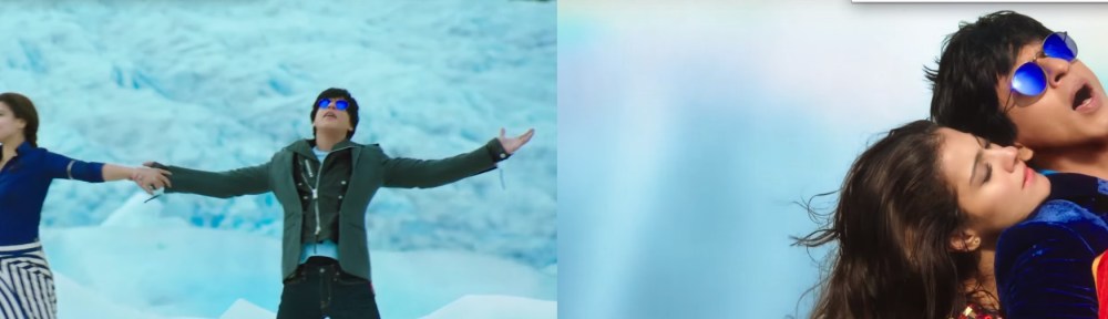Oh! There was one thing I noticed for the first time, this time! In ‘Gerua”, at 2:43 in this version, Shahrukh’s glasses match the color of his jacket. But! At 3:54, his glasses match the color of KAJOL’s top.