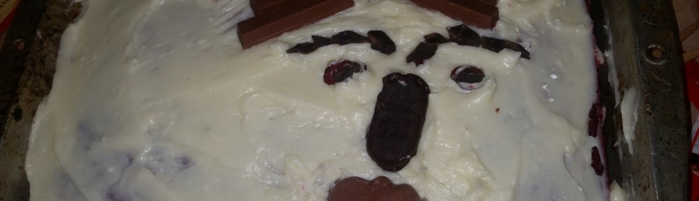 My cake is done! Thanks to discount Halloween candy I found in my freezer. So beautiful! I can’t wait to eat his nose.