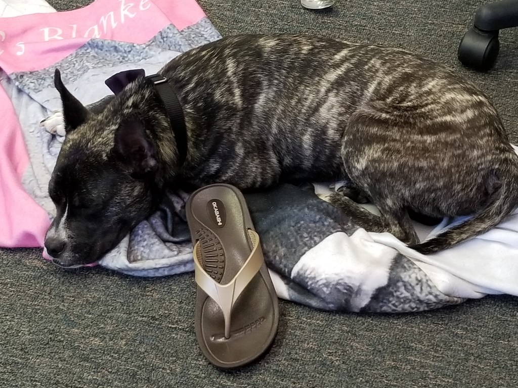 Oh, and just to start your week off well, here is a photo of Albie Dog with one of the pieces of clothing he has collected. He doesn’t chew on or play with them, he just likes collecting them.
