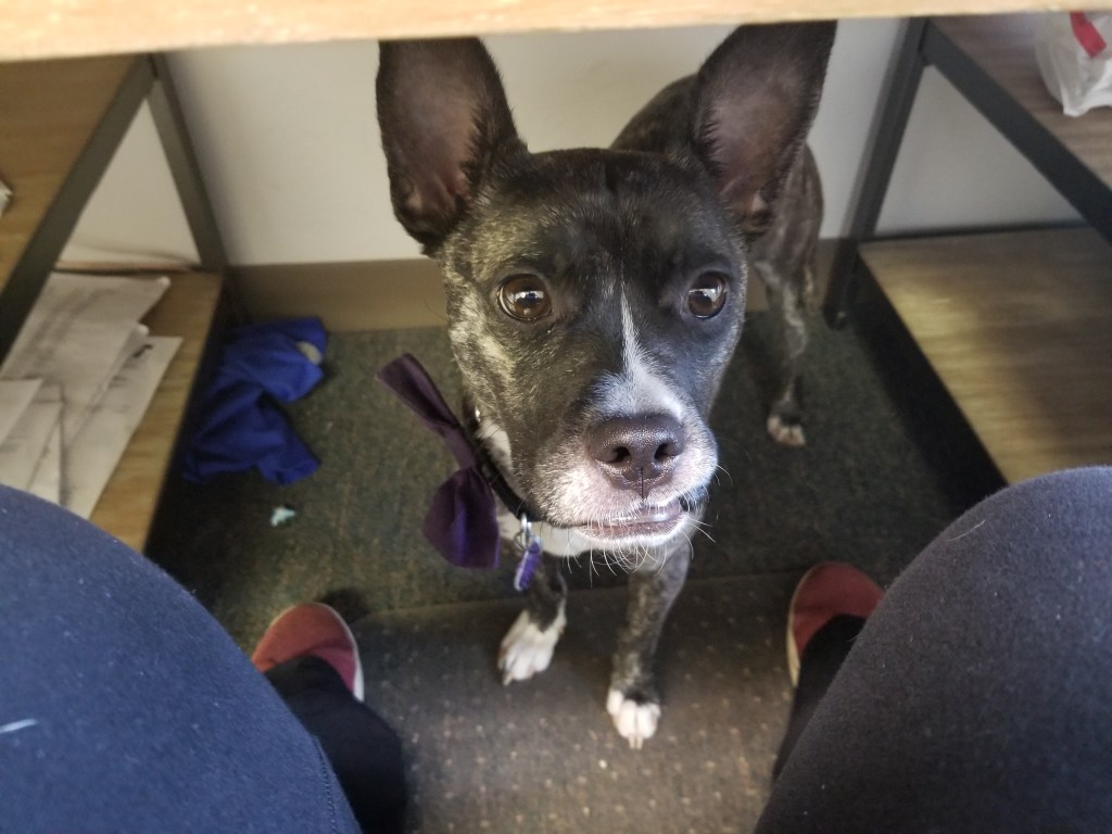 Albie Dog is increasingly settling in to life with me. I had to leave him with my parents last weekend, which was a shock, but he has mostly bounced back. Comes to work with me every day and hides under the desk.