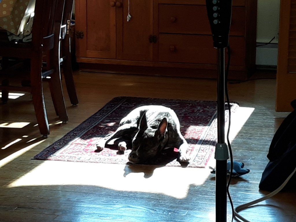 And after a hard day of shoe collection, ceiling fan observation, and general dogginess, there is the lovely activity of finding a sunny spot and going to sleep