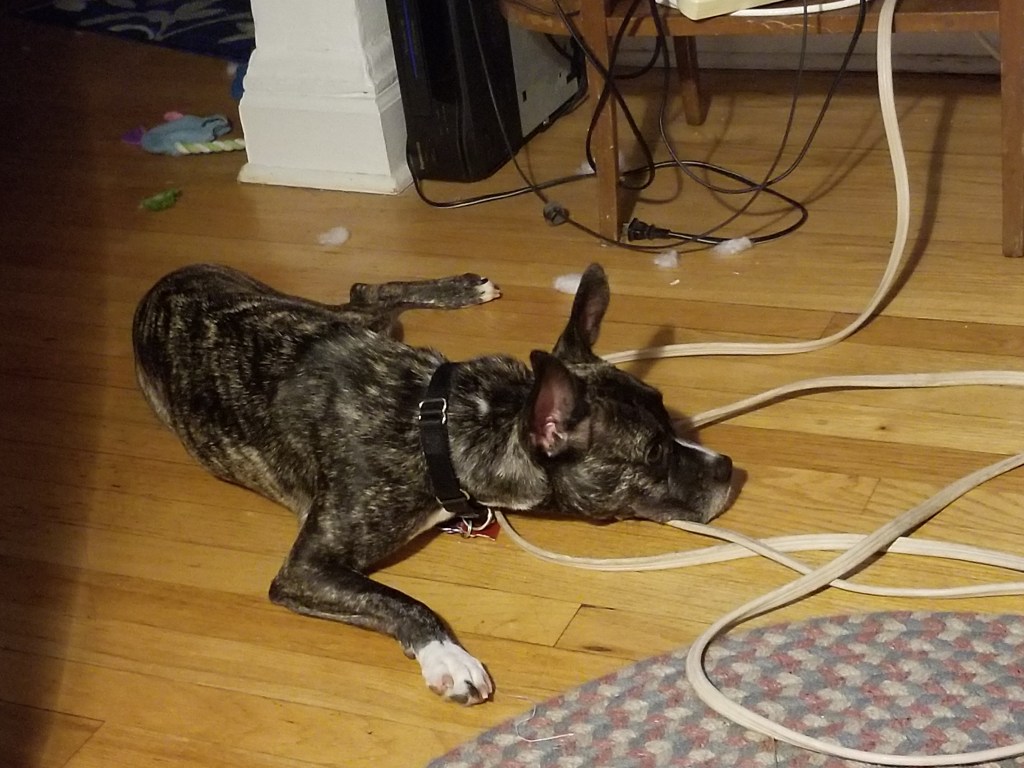 Yeah, he looks all abused and sad doesn’t he? This dog is so spoiled! He spends 9 hours a day at the office being passed around and cuddled and kissed, then comes home and takes up 2/3rds of the sofa while we watch TV.