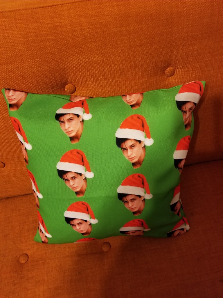 I will be making you a fabulously wonderful personalized Xmas card and sending it to you in the next few days. Next Sunday (after you have received it so I’m not spoiling the surprise) I will share a picture of the fabulous wonderfulness with the whole blog community. For now, I will share a picture of other fabulous wonderfulness, the pillow my sister gave me that perfectly transitions between the November 2nd holiday and the December 25th holiday:
