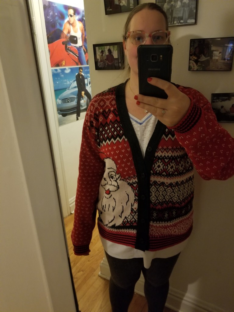 Anyway, yesterday afternoon my sister and I took a baby break and went to the mall to see Frozen II and then walk around looking at the decorations. We wore our matching Christmas sweaters and 3 separate strangers stopped us to compliment us. Who wouldn’t love to see two identical looking 30-something women in these beautiful cardigans?