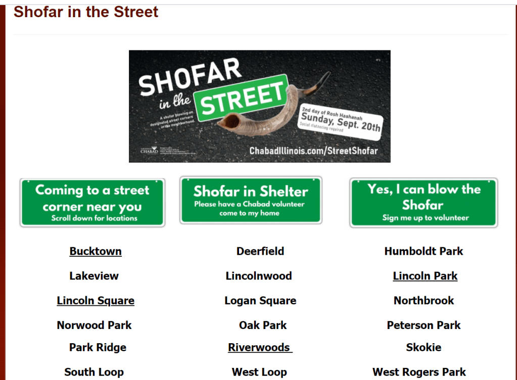 This year, a volunteer organization is going all over the city to blow the Shofar on corners so folks can safely gather in the street and hear it on Rosh Hoshanah.