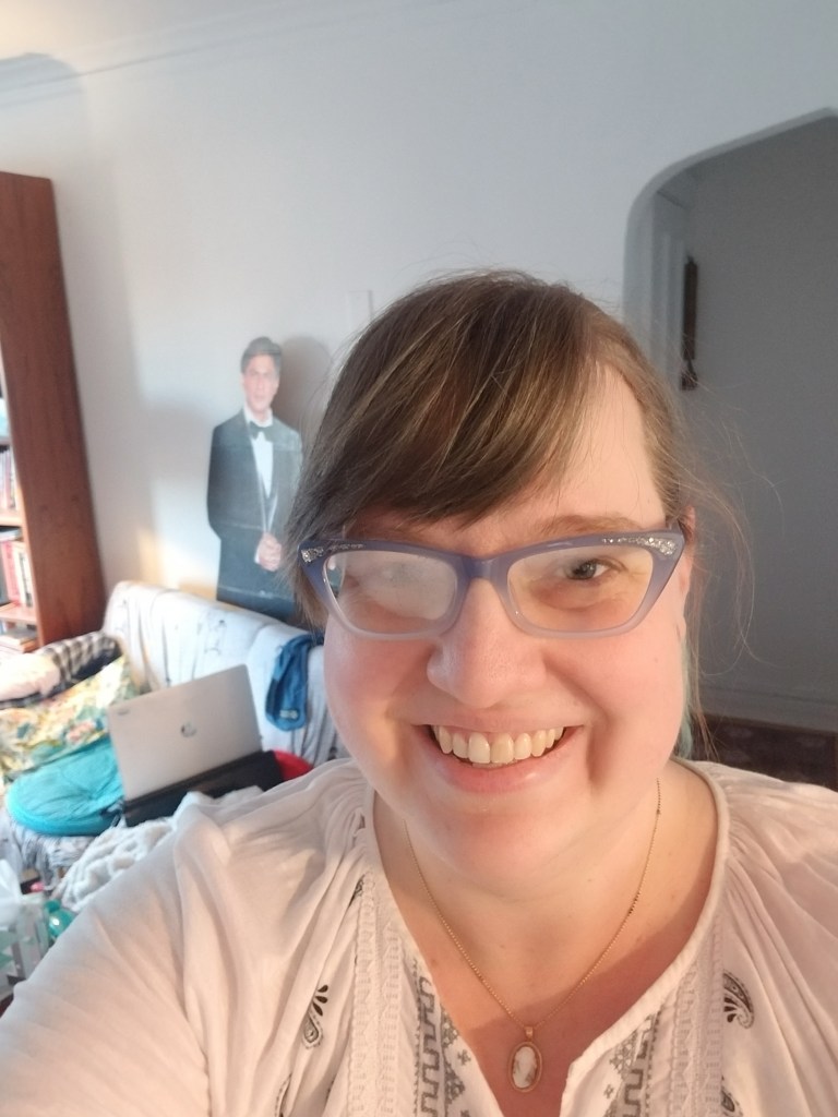 I got my new glasses!!!! First bifocals, so I am doing a lot of tipping my head up and down to get used to them, but they look good on me which is the important part.